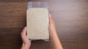 Tip: Pomocí nože propíchněte sáček uprostřed a rozřízněte ho směrem dolů, nyní už jen vysypete rýži z jedné a následně z druhé strany.